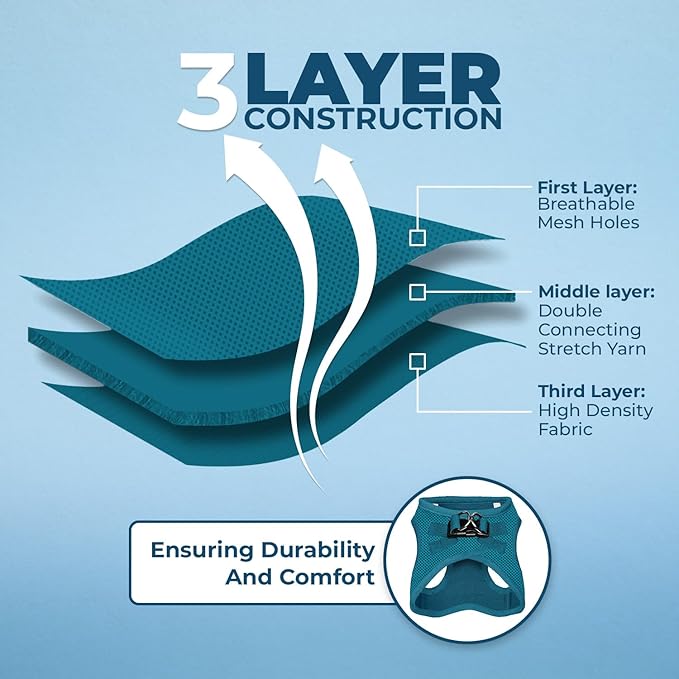 - ALL WEATHER MESH: Made with a soft, breathable air mesh, this lightweight pet harness is perfect for walks all year round.