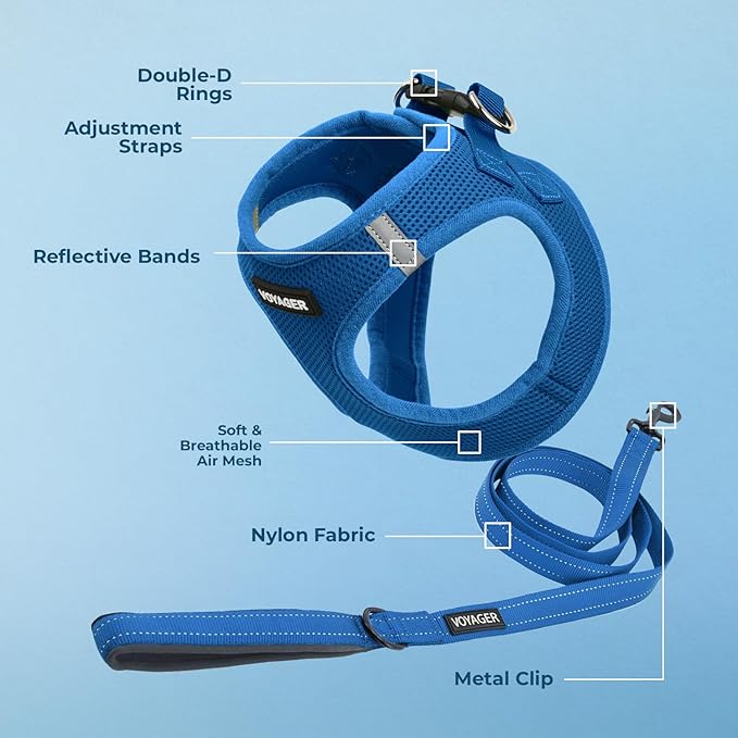 Voyager Step-in Air All Weather Mesh Harness and Reflective Dog 5 ft Leash Combo with Neoprene Handle, for Small, Medium and Large Breed Puppies by Best Pet Supplies - Set (Royal Blue), M
