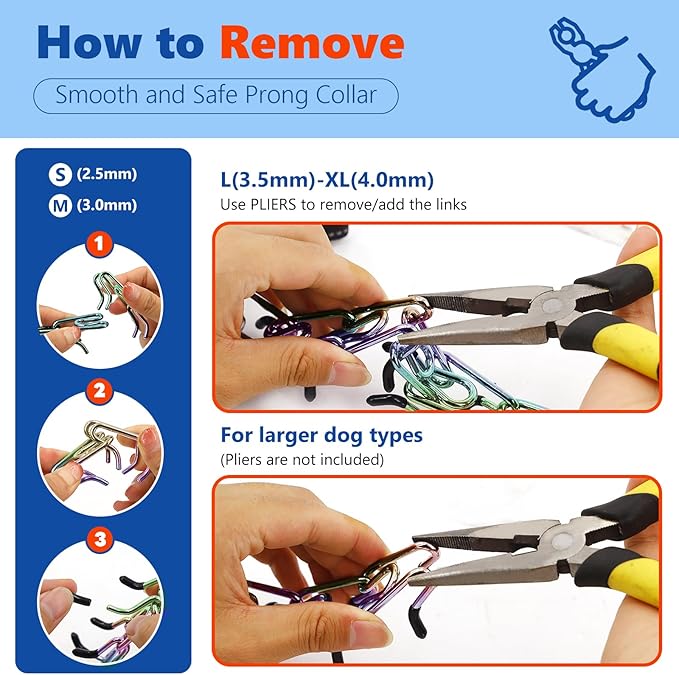 - 【STRONG AND RELIABLE】--- Supet steady dog training collar has a quick release snap, you can quickly unravel. It's necessary to use PLIERS when you need to add some links, you can't take it apart easily, either your pet dog. Be the pack leader with this safe and effective training collar.