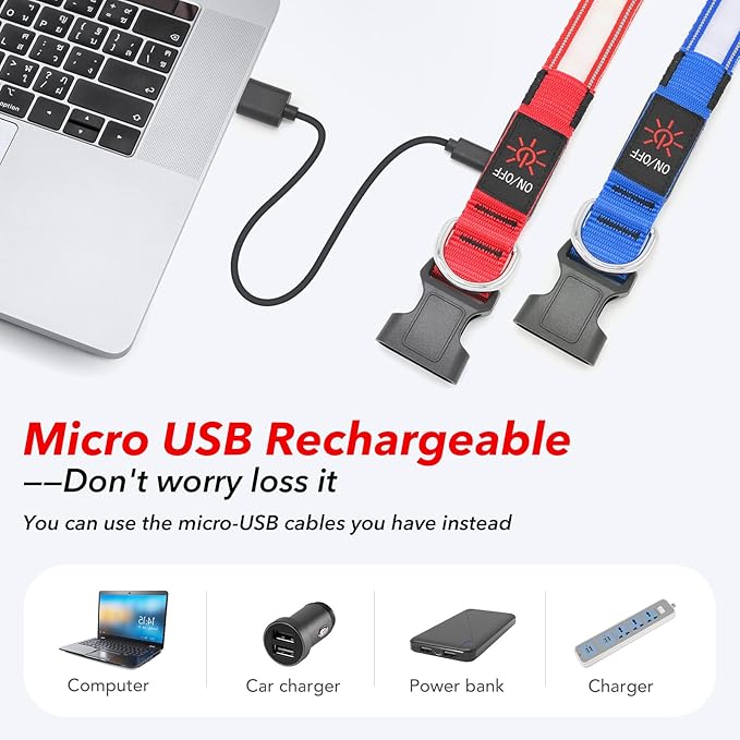 - π UPGRADED FULLY ADJUSTABLE: The length of our light dog collar can be adjusted to fit any size. It also has a heavy-duty D-ring that can be attached with any dog ββleash. Quick-release buckle makes the collar easily put on and take off. Please measure the circumference of the dog's neck with a soft tape measure to choose the right size. Always give your dog enough air to breathe.
