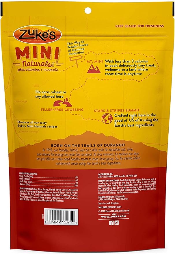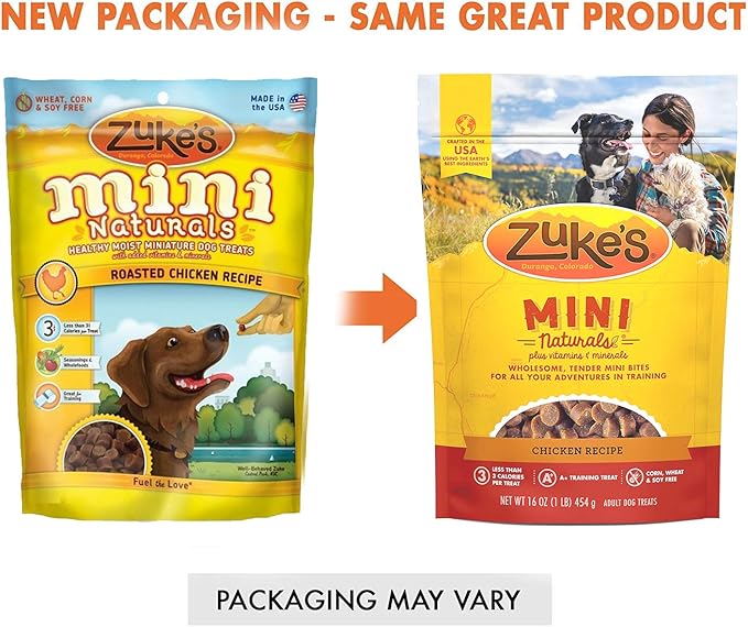 - This bundle includes 2 packs of Zuke Mini Naturals Dog Treats Chicken Flavor 16 oz (1 Lb) each with 10ct pack of Pet Faves Pet Wipes