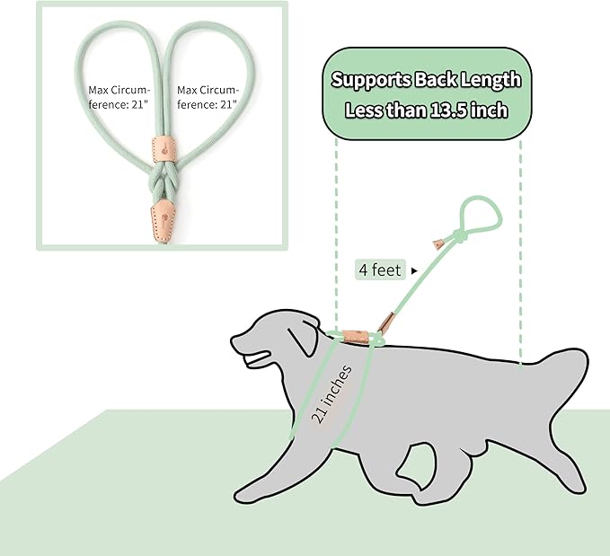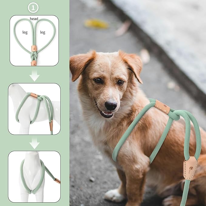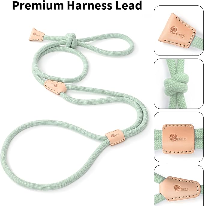Mile High Life Harness Lead No Pull, All in one Dog Lead 2-in-1, Rope Leash and Harness Two in One, Slip Leash for Puppy Small Dogs Training, 4FT Green