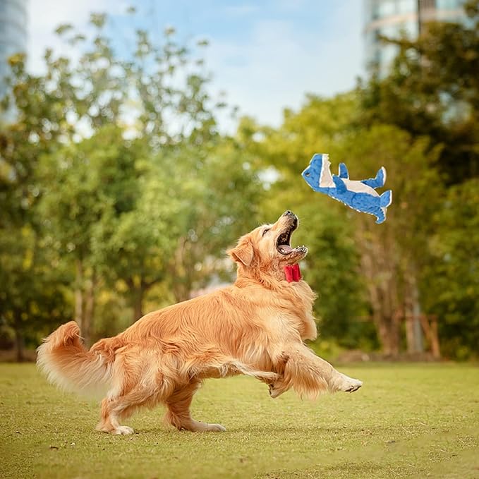 - TEETH CLEANING -- Unique dinosaur dog toy and bright blue color can draw your dog’s attention to chew for hours. These toys are great for bouncing, shaking, tossing and retrieving.