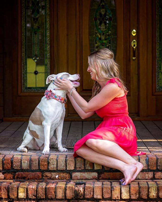 Lionheart Glory Dog Collar With Flower - Cute Floral Pattern Adjustable Pet Collar for Medium Dogs
