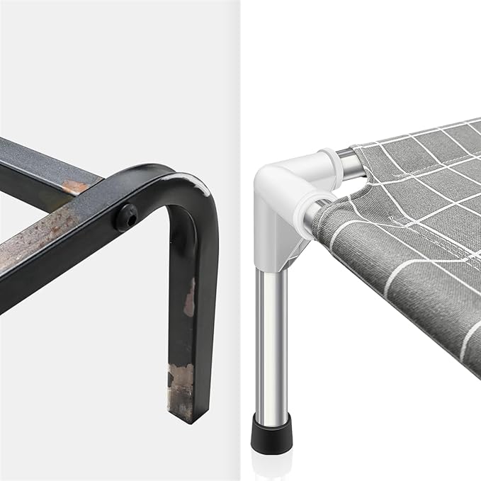 - 【The Raised Dog Bed with Stainless Steel Pipe Frame】The frame of the pet bed is made of stainless steel, which provides better load-bearing capacity. The stainless steel pipes do not have a paint coating, so they won't peel or fade, are resistant to corrosion, and won't be damaged by rust.