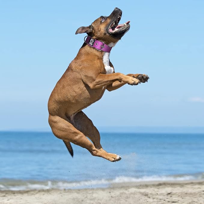TSPRO Tactical Dog Collar 1.5 Inch Wide Thick Dog Collars with Heavy Duty Metal Buckle, Durable, Strong, Adjustable for Medium to Large Dogs (Purple L)