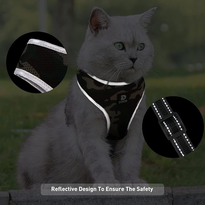 - SATE & COMFORTABLE: Sturdy buckle and D-ring connected to leash, this safety harness gives you the confidence to walk your pet in the busiest of environments.Vest-style design can evenly distribute leash pressure across the chest and shoulder to prevent choking or neck strain.