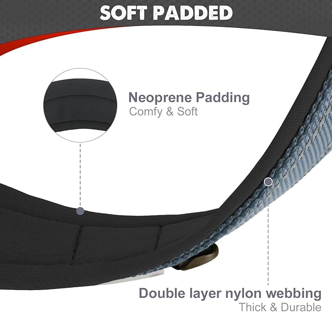 - Neoprene Soft Padding: The neoprene padded dog collar features extremely soft for comfy wear and can absorb the shock when wearing or pulling. Also, come with quick-dry and odor resistance. You never worry about odor or water on the collar