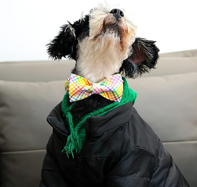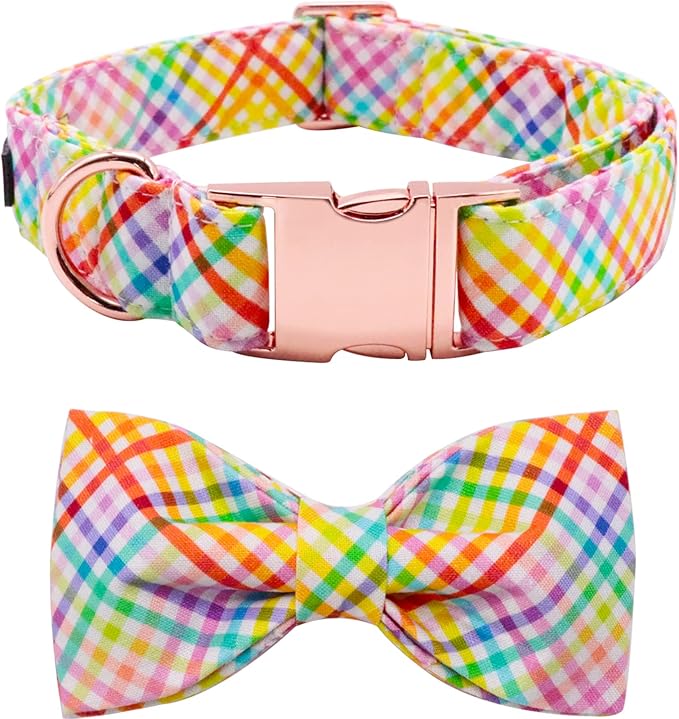 Lionet Paws Easter Dog Collar with Bowtie - Colorful Cute Cotton Bowtie Dog Cat Collar with Metal Buckle for Puppy Girl Boy, XXS, Neck 7-11in