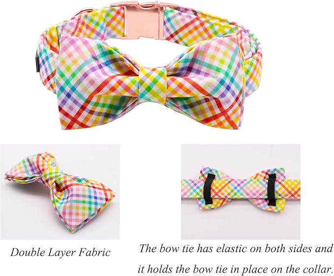 Lionet Paws Easter Dog Collar with Bowtie - Colorful Cute Cotton Bowtie Dog Collar with Metal Buckle for Large Dog Girl Boy, L, Neck 16-24in