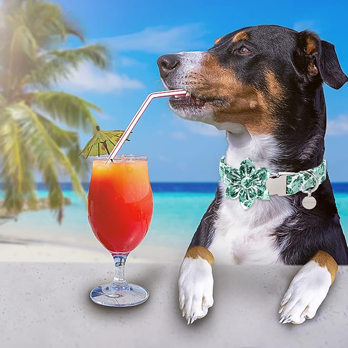 - UNIQUE CRAFTSMANSHIP DESIGN: Green banana leaves pattern craftsmanship collar suitable for summer party, holiday and so on. Cute collar is great gift for dressing up your dog.