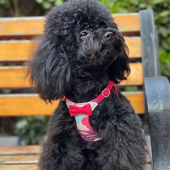 Puppytie No Pull Small Dog Harness with Multifunction Dog Leash,Lightweight Soft Adjustable No Choke Escape Proof Pet Harness Vest Pet Harness Vest,Suede Bow Wine red,S