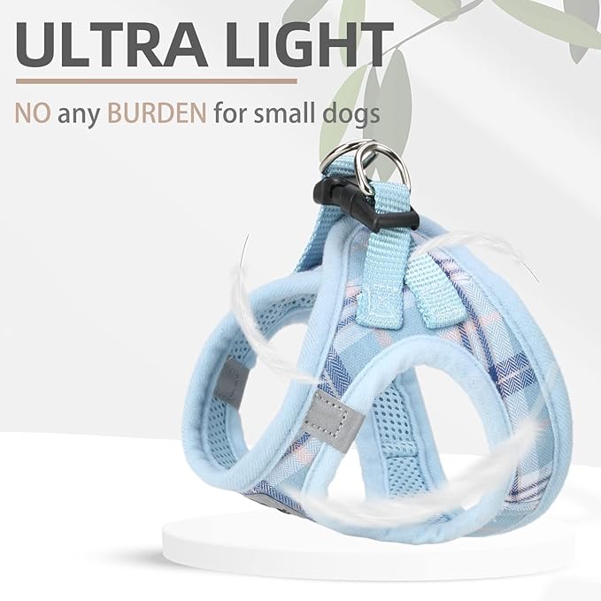 - [REFLECTIVE, PLAID PATTERN] - This Harness has two sides of reflective straps, and the middle logo also is reflective, so if you walk with your dog at night, then both of you will be safer! In addition, the classic plaid pattern is designed by our internal brand team, so it's very different from other normal harnesses. This plaid pattern looks both classic and stylish and is never out of date.