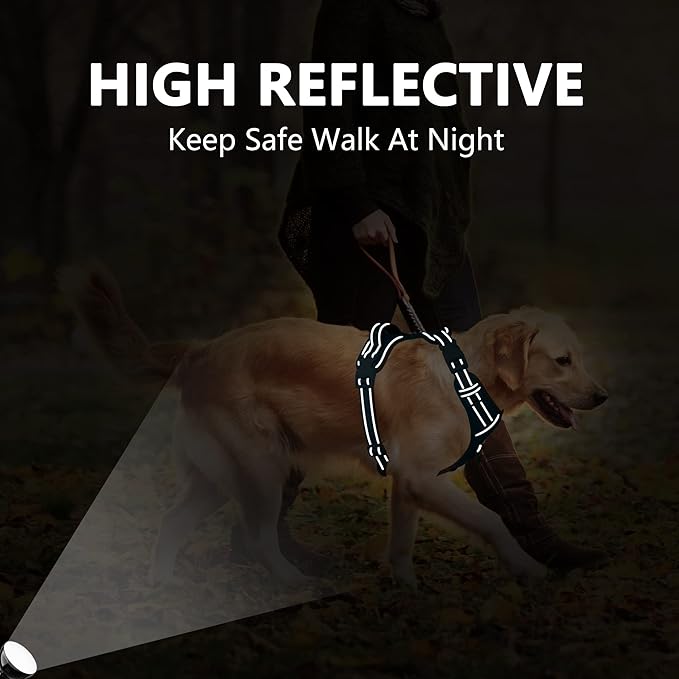 - SAFE & USEFUL: This soft harness featured with reflective strap is ideal for night time walks, making our dogs stand out and keep them seen and safe. The sturdy padded handle on top makes it easy to grab dog quickly in emergency. It is fabulous for helping dogs up stairs and looping a seat belt through it for car rides.
