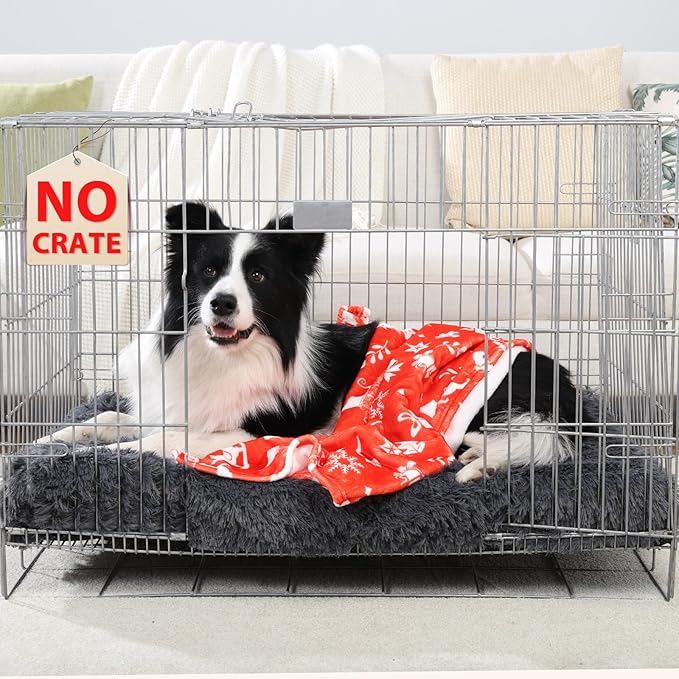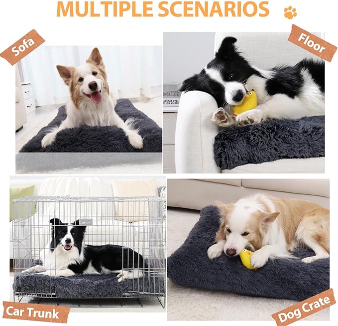 - 【PREMIUM MATERIAL】- Our dog crates for large dogs is constructed with thousands of individual fluffy plush microfibers, soothing your dog’s tired paws and shielding body from the cold floor. Thick and high dense padding make the dog beds for large dogs durable for long trem use.