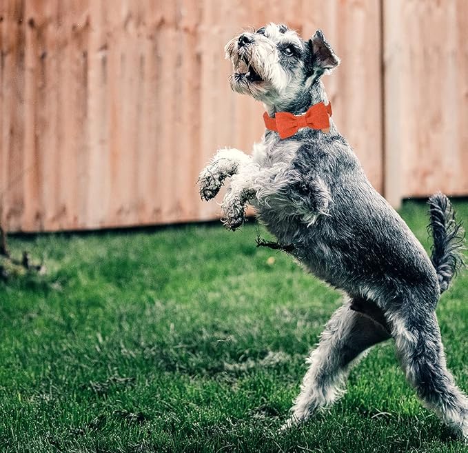 - [QUALITY] High-quality quick release metal buckle,equipped with a D-Ring for quick and easy leash attachment.The bow tie is removable, attached to dog collar with two elastic strap.Hand-made, twice quality inspections, to ensure the durability of the product.