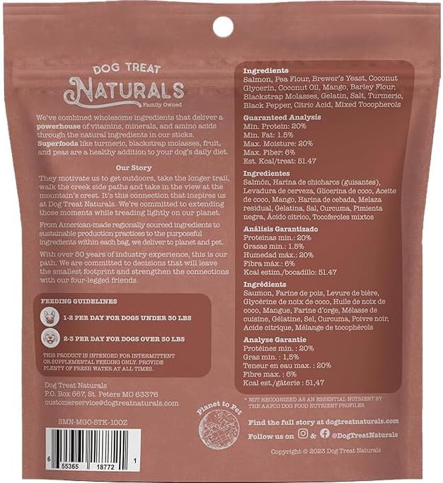 Salmon & Mango Superfood Sticks for Dogs | All-Natural Premium Training Dog Treats | Contains Turmeric for Joint Health | Made with Real Salmon & Mango | Made in USA | 10 Ounces