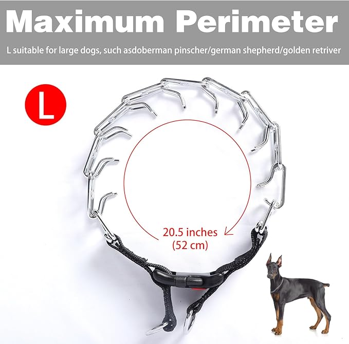 Prong Collar for Medium Large Dogs Walking Training, Adjustable Pinch Choke Correction Collar Heavy Duty Metal Spiked Anti Pull with Quick Release Buckle, D-Ring, Dog Whistle Attached (L,18”-20”)