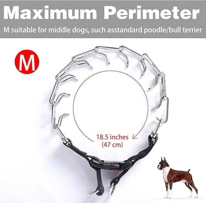 - Suitable Size,More Comfortable:Four sizes (S/M/L/XL) are available, you can choose correction collar for dog training according to your pet's neck and weight. If you buy a larger size,you can use pliers to remove links to a right size.