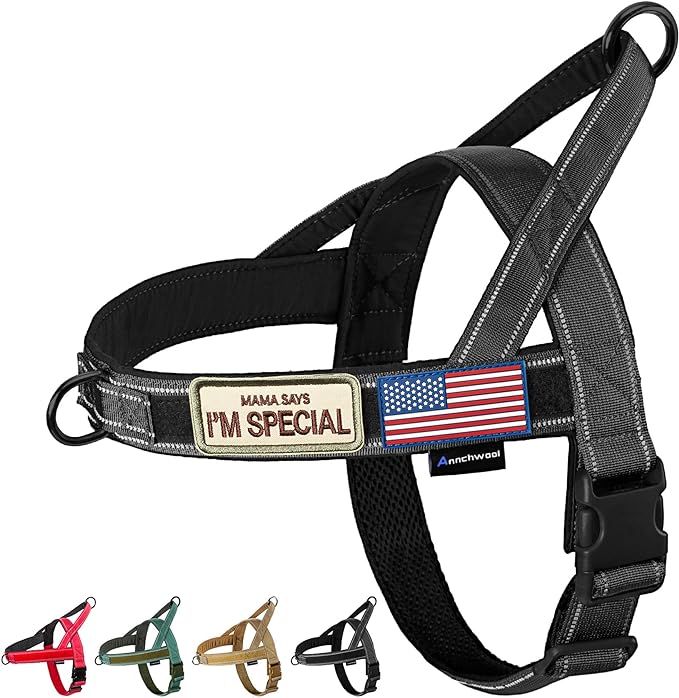 - [Come with TWO Patches] There has a velcro area on the dog walking harness,and come with 2 patches, you can put the patches "MAMA SAY I'M SPECIAL" or the flag on the dog harness velcro area to make your dog unique.
