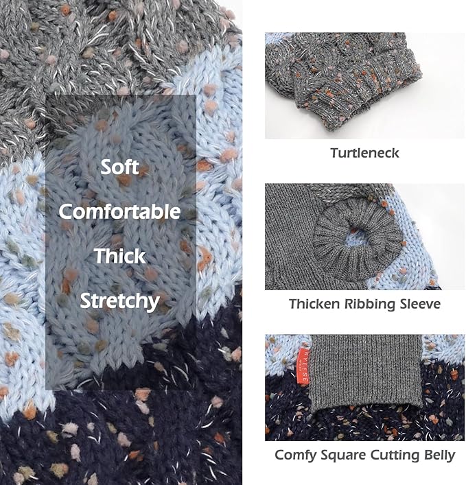 - 【Soft & Stretchy】Made of high-density acrylic yarn, which is not only soft, but also has high elasticity, easy to put on and take off. The turtleneck design provides better warmth protection.