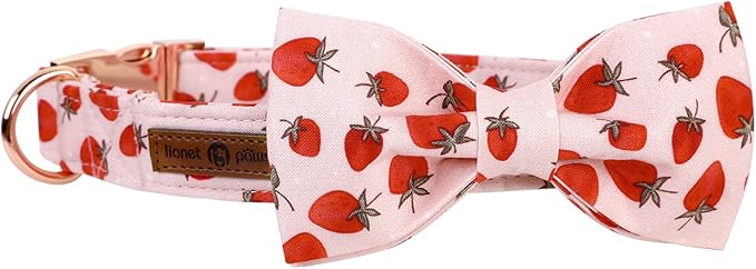 Lionet Paws Dog Collar with Bowtie - Summer Cute Cotton Adjustable Bowtie Dog Collar with Metal Buckle for Large Dog Girl Boy, L, Neck 16-24in