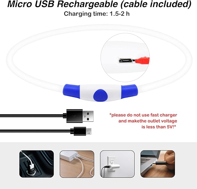 - Safety LED Dog Collar: The light dog collar will help you find your dog quickly in the dark. (If the bulb is damaged, the collar will turn into other colors) Please Do Not Use Fast Charging