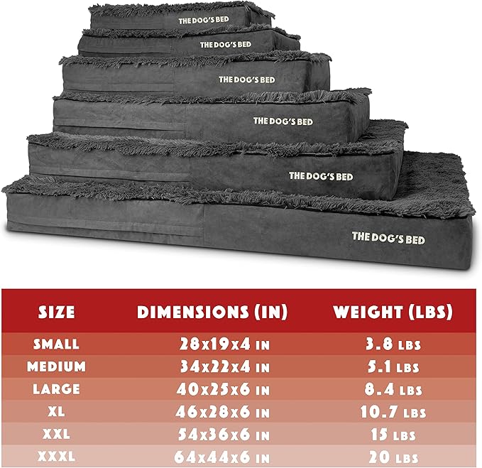 The Dog’s Bed Orthopedic Memory Foam Dog Bed, XXL Grey Fur 54x36, Pain Relief for Arthritis, Hip & Elbow Dysplasia, Post Surgery, Lameness, Supportive, Calming, Waterproof Washable Cover