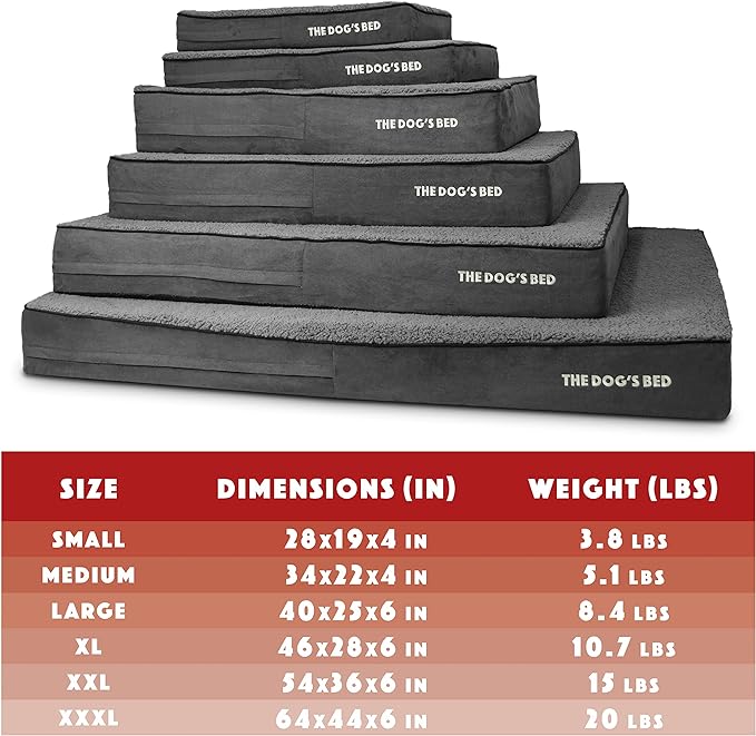 The Dog’s Bed Orthopedic Memory Foam Dog Bed, Dark Grey Plush Medium 34x22, Pain Relief for Arthritis, Hip & Elbow Dysplasia, Post Surgery, Lameness, Supportive, Calming, Waterproof Washable Cover