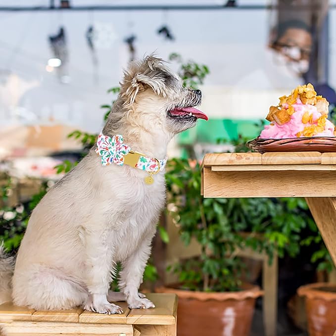 - ATTENTION: Don't let your dog bite the collar and bow. You may not receive exactly the same pattern as the picture, because the fabric used to make the collar is cut randomly. If you have any questions, please feel free to contact me. I will be at your service 24 hours a day.