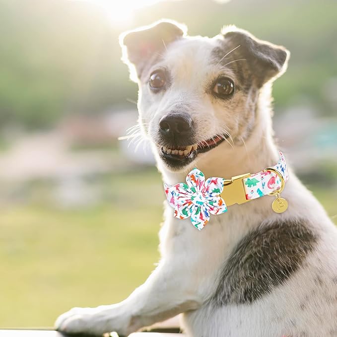 Flower Dog Collar, Dinosaur Adjustable Comfortable Cotton Dog Collar with Flower, Metal Buckle Dog Flower Collar for X-Large Girl Dog, XL