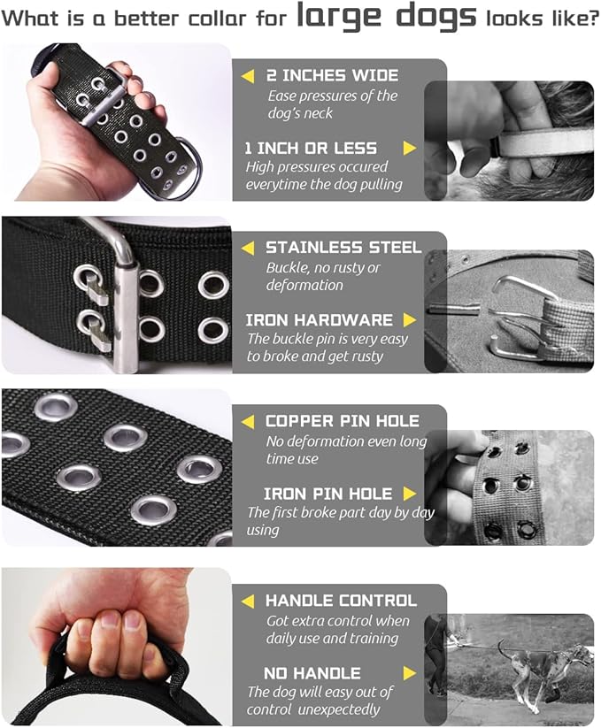 - COMFIEST - Our wide collars ease pressures from dog's neck and lined with neoprene for added comfort. Appropriate size handle brings you extra control when your dog k9 training or hunting