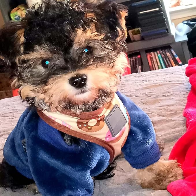 - This small cute dog coat surely makes your doggies glad for the attention from you and his friends. It’s elastic, snug but not too tight, allow more freedom of movement for its legs.