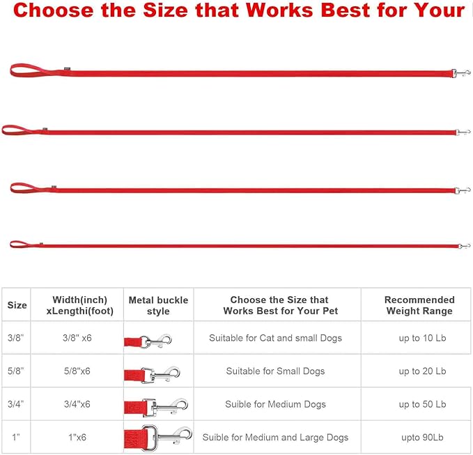 AMAGOOD 6 FT Puppy/ Dog Leash, Strong and Durable Traditional Style Leash with Easy to Use Collar Hook, Great for Small, Medium and Large Dogs (5/8 in x 6 ft, Black and Red (2-Pack))