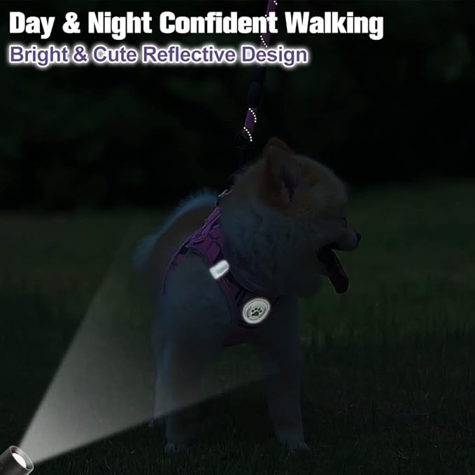 - 🐶Easy on and Lightweight---STEP IN, CLIP & GO! Effortlessly slip this easy-to-wear vest harness on and off your puppy in seconds. 1) Put the pet's front legs in the step-in harness. 2) Lift the small dog harness and lock the buckle. 3) Adjust the chest size and clip leash on the D ring. Now let's have a walking with your pet dog!
