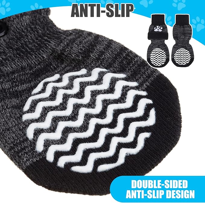 - [Double Sides Non-Slip] - Each side of the sock has [Wave pattern Grip] which can offer extra traction when your dog is walking on the smooth floor. Even if the socks twist, they will still work. Besides, the design of the double-sided grip makes the socks a longer life. When the grip on one side is worn and does not have the anti-slip effect, you can let the dog wear the other side to play a new anti-slip effect.
