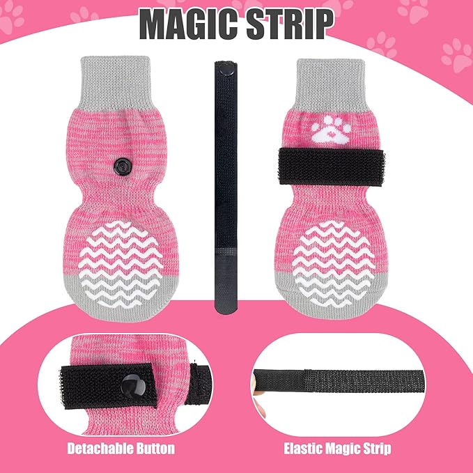 - [Anti Falling-off] - To prevent socks from falling off during use, our socks are equipped with hook&loop straps that are adjustable and removable. You can adjust it according to your dog's feet, and you can remove it when you need to wash the socks. Besides, the sock tail is designed to be tightened, which can fix and prevent the sock from falling when the pet is walking or running. It's very convenient to use.