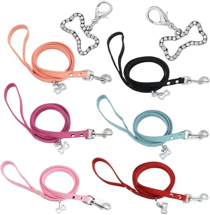 Puppy Collar and Leash with Bling Diamond, Pretty Crystal Sparkly Rhinestone Glitter Jewel Girls Cat Collars for XXS Xs Small Medium Pet Female Dogs Boys Kitten, Pink S