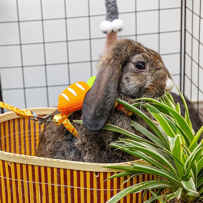- The rabbit harness and leash are printed with a cute carrot pattern, not only that, but there is also a plush "carrot" on the back of the rabbit harness, which makes the rabbit look more cute after wearing it, and it is a great choice for rabbit dressing.