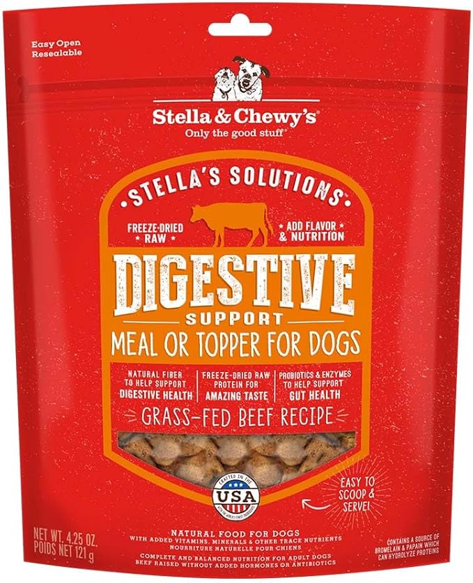 Stella & Chewy's Freeze-Dried Raw Dog Food for Digestive Health - Grass-Fed Beef Dinner Morsels - Natural Solution for Sensitive Stomach, Gas & Firm Stools - Premium Raw Nutrition - 4.25oz