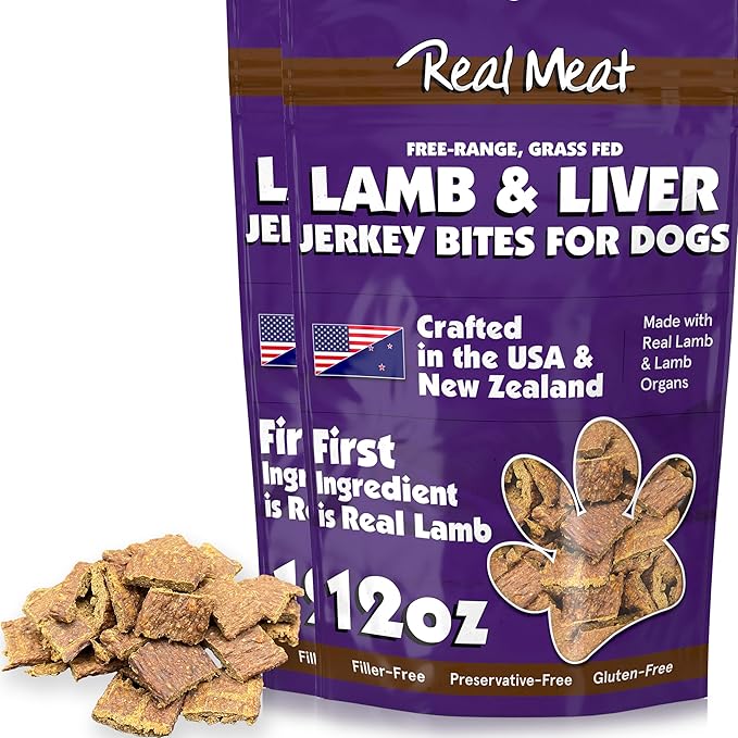 Real Meat Dog Treats - Two 12oz Bag of Bite-Sized Air-Dried Lamb & Liver Jerky for Dogs - Grain-Free Jerky Pet Treats Made up of 95% Free-Range, Grass Fed Lamb - All-Natural Treats
