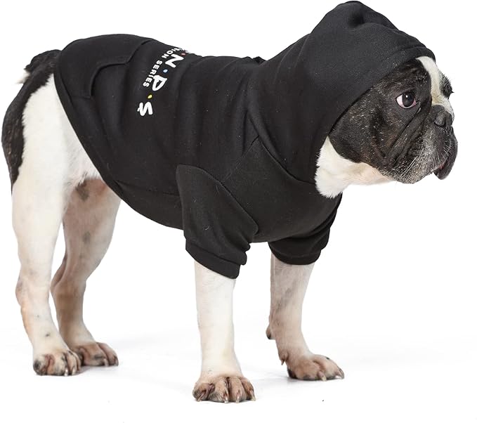 Friends TV Show Dog Hoodie, Black With Logo, Size Small With Hood and Pocket for Treats or Waste Bags | Pet Clothes for Friends Lovers