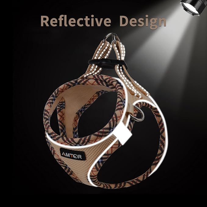 AMTOR Small Dog Harness with Leash Set, No Escape Easy Walk Puppy Harnesses for Training Walking, Step-in Reflective Soft Dogs Vest for XS S Medium Extra-Small Large Sized Dog(Beige,S)