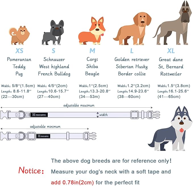 - ✍Tailored Fit for All Breeds: M:13-22in(34-55.9cm). Measure your dog's neck,add 0.7in(2cm) for comfort,,and enjoy a secure yet gentle fit.Designed for Shiba,Corgi,Beagles,and more!
