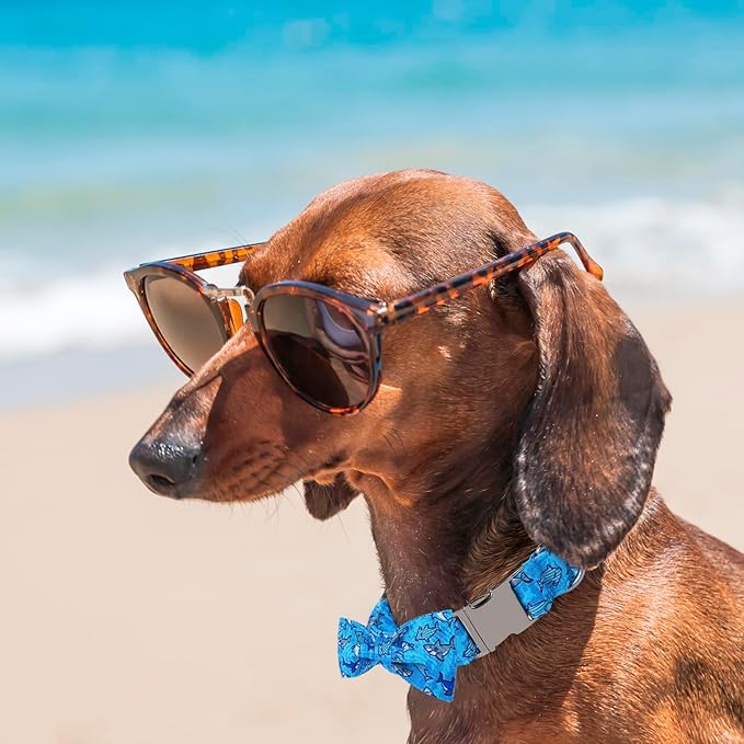 Maca Bates Shark Dog Collar with Breakaway Bow Tie Boetie Puppy Collar with Metal Buckle Cute Pink Adjustable Wide Soft for Small Medium Large Dogs for Girl Boy Pets