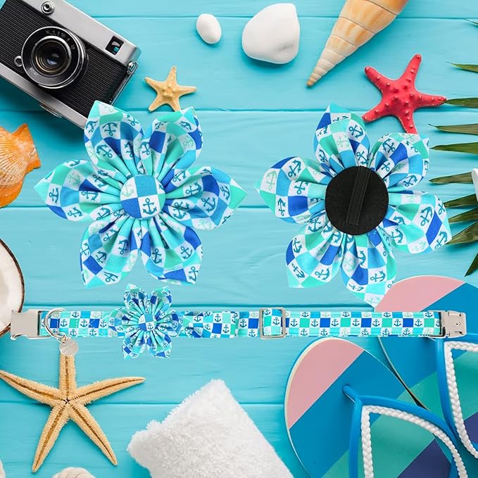 - ADORABLE SUMMER FLOWER COLLAR: Boat pattern is typical of summer collar. Flower is detachable and well-made with elastic loop that let you take the flower off and on with ease.