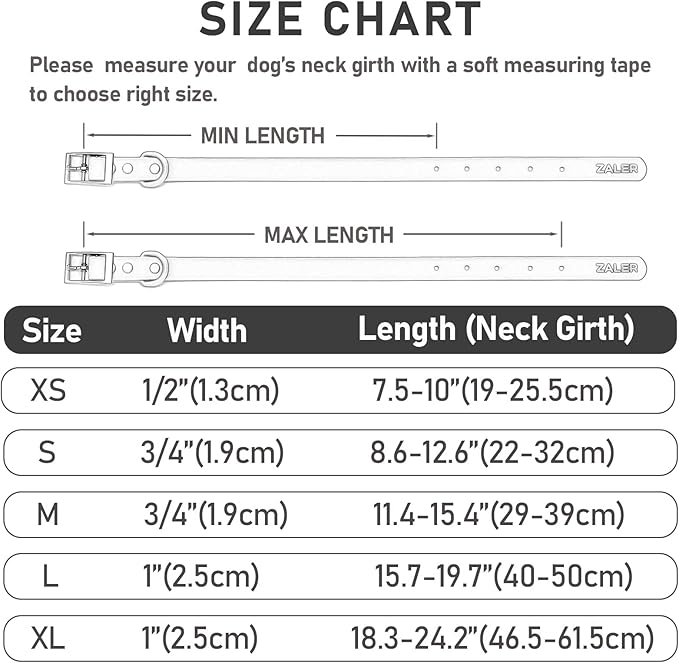 - 【EASY TO CLEAN】- all you need is a damp cloth to keep it looking brand new. NO More Dirty and Stinky Pet Collars! If our pet collar size does not fit your furry friends, please feel free to contact us to get a new collar of the correct size. ZALER provides 24/7 after-sales support for our durable dog collars. Please contact us directly if you have any questions or issues.