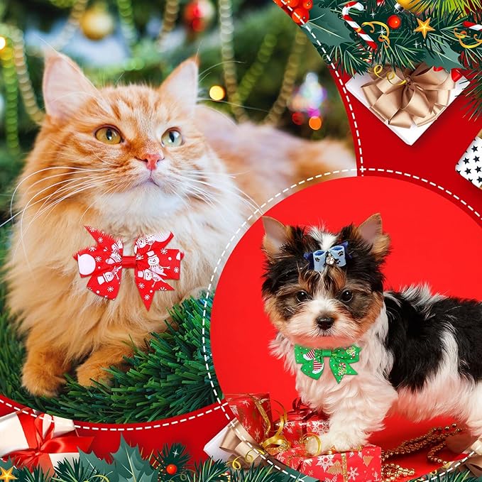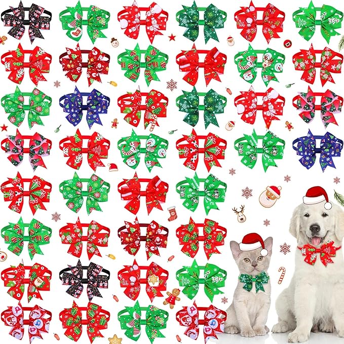 - Adequate Quantity to Meet Your Different Needs: you will receive 40 pieces Christmas bow ties, sufficient quantity and various styles to meet your dog or cat's daily changing and decorating needs