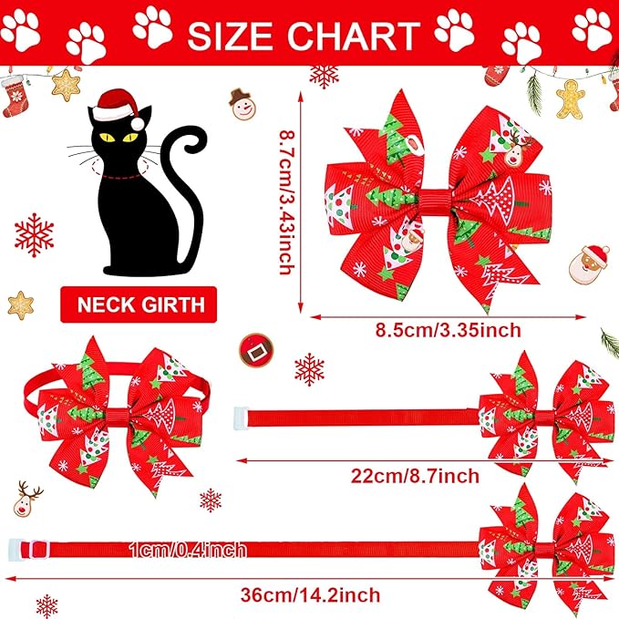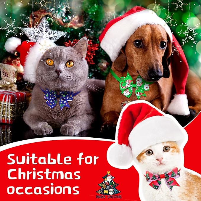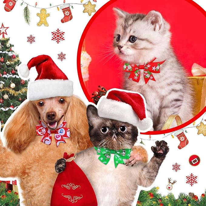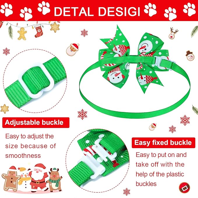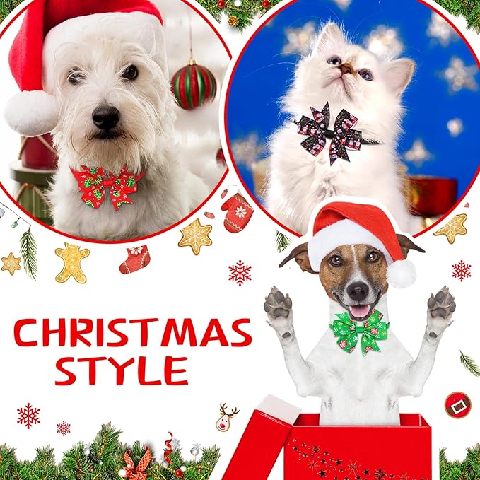 - Christmas Design: Christmas dog bow ties for small dogs have many Christmas elements on them, such as Santa Claus, Christmas trees, snowflakes, etc., fulling of Christmas atmosphere, a symbol of Christmas; You can dress your pet up in Christmas style, making your pet the focus of the crowd