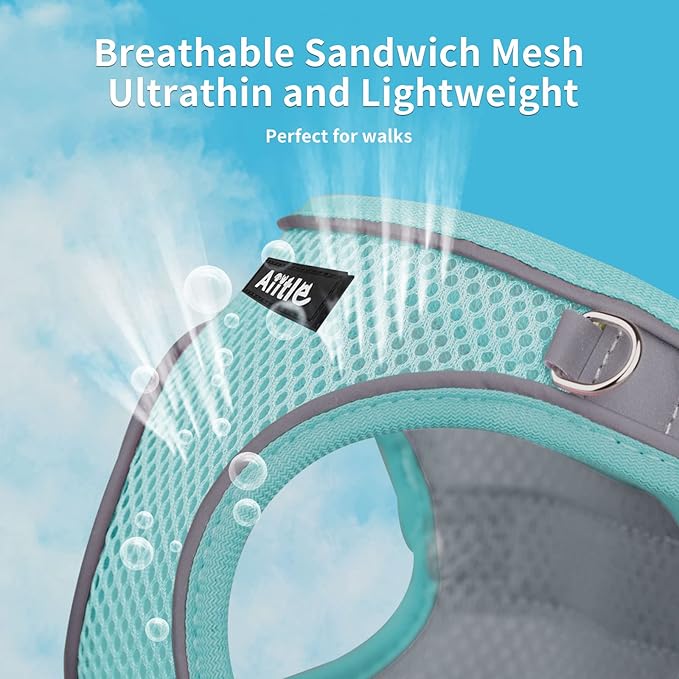AIITLE Comfortable Dog Harness and Leash Set for Walking - Spring Step in Vest Harness,Reflective Bands, Adjustable No Pull Puppy Essentials, for Small Dogs and House Cats Turquoise XS